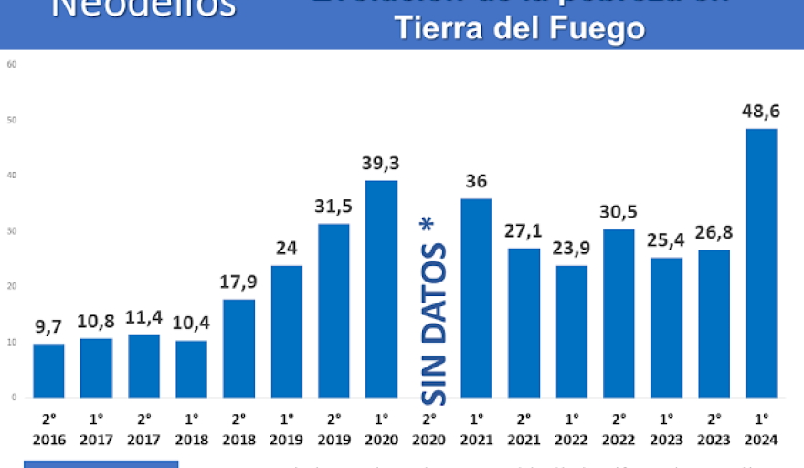 Cabe señalar el enorme crecimiento en relación con el semestre anterior que se ubicó en 26.8% para el segundo semestre del 2023, lo que implica un crecimiento de la pobreza en Tierra del Fuego de 21.8 puntos porcentuales.