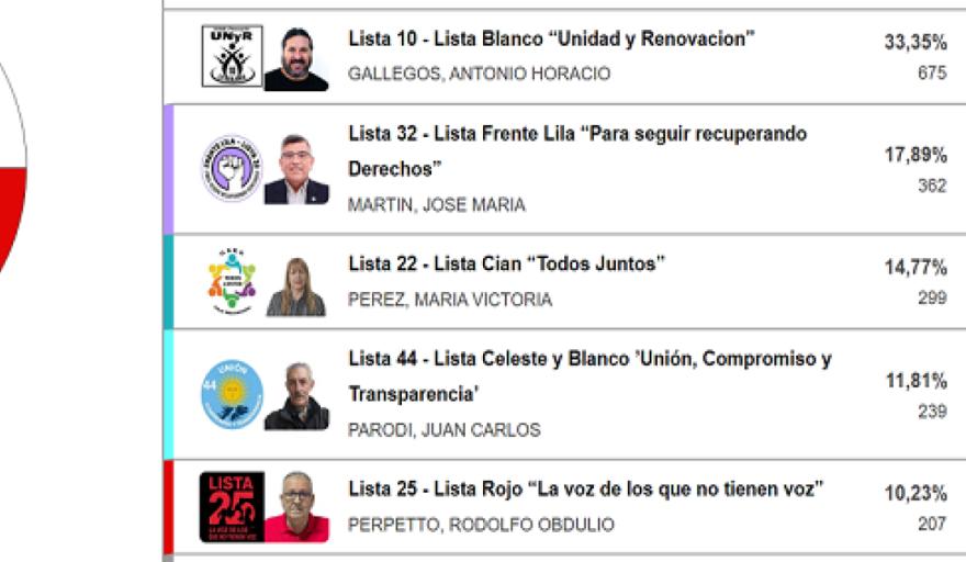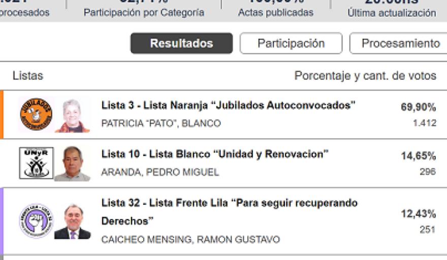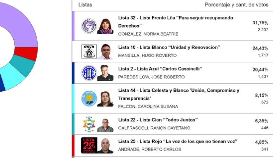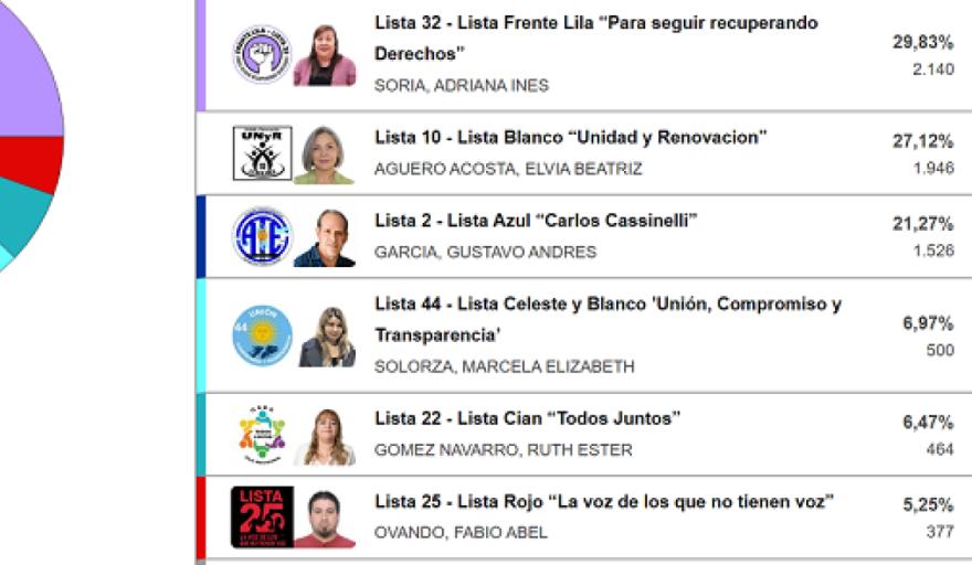 La Lista Nº 32 Lila ubicó a los dos Vocales por el sector Activo (OSEF y CPS); la Lista Nº 10 Blanco se quedó con el Vocal por el sector Pasivo a la OSEF; mientras que la Lista Nº 3 ubicó a la Vocal por el sector Pasivo a la CPS.