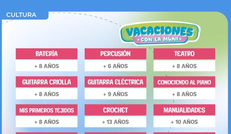 Además, se brindará Papelería Creativa, Artes Plásticas, Manualidades, Mi primera Puntada, Iniciación a la Danza, Danza Contemporánea, El lenguaje del Retazo, Cerámica y violín, entre otros. Las propuestas estarán dirigidas a distintas franjas etarias.